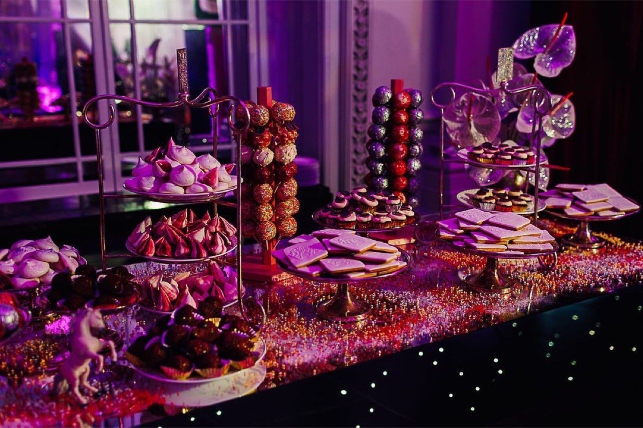 A sweet treat bar is also pretty much as it sounds. So think a bar or sideboard full of little treats and sweet things. Sweet tapas if you like. These are not desserts but smaller, bitesize delights. Think marshmallows, meringue kisses, mini cupcakes, truffles etc. Guests can graze and pick up each time they pass. Or you can have plates on the side for guests to fill with their chosen selection. This was what we did for RSVP Club and it went down really well. A sweet treat bar is perfect for less formal gatherings. But can also be set out on afternoon tea stands for each table.